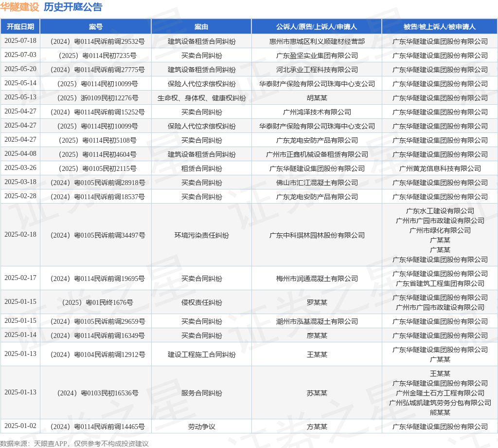 本站消息,根据天眼查APP显示,近日公布了一则广东华隧建设集团股份有限公司作为被告/被上诉人的开庭公告,详细内容如下:
